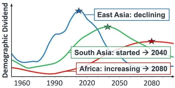 Timing of Demographic Dividend by Continent
