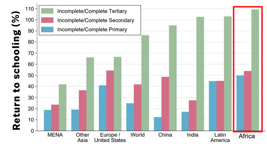 Returns to schooling are the income or earnings gains accrued by individuals from investing in that level of education.